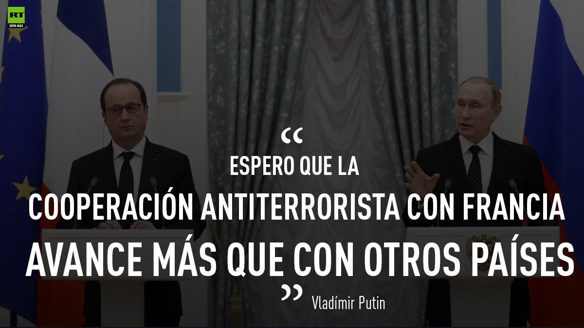 En relación a la cooperación con Francia en la lucha antiterrorista, el mandatario ruso ha expresado la esperanza de que "avance más" que con otros países. "Espero que la colaboración con nuestros socios franceses vaya más allá que con otros, que luchemos en un nivel práctico contra el terrorismo en Siria", ha afirmado Putin, añadiendo que se refiere a los acuerdos entre los ministerios de Defensa de ambos países sobre la coordinación de sus actividades.