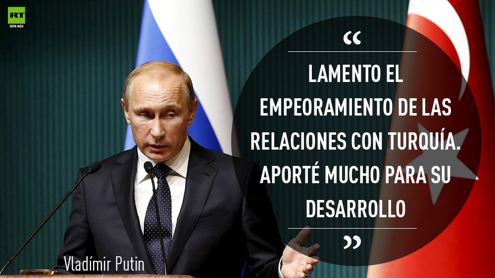 Vladímir Putin ha expresado que lamenta mucho el empeoramiento de las relaciones con Turquía. "Pienso que todos lo lamentamos y yo personalmente lo lamento mucho porque he hecho mucho para la construcción de estas relaciones durante un largo período de tiempo", ha dicho Putin.