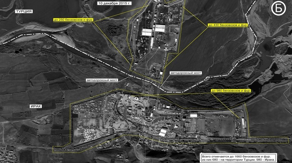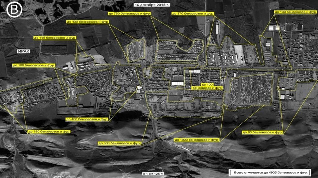 Durante su rueda de prensa Rudskói presentó imágenes grabadas por la inteligencia rusa en las que aparecen casi 12.000 camiones cisterna en el puesto de control fronterizo turco-iraquí cerca de Zajo.