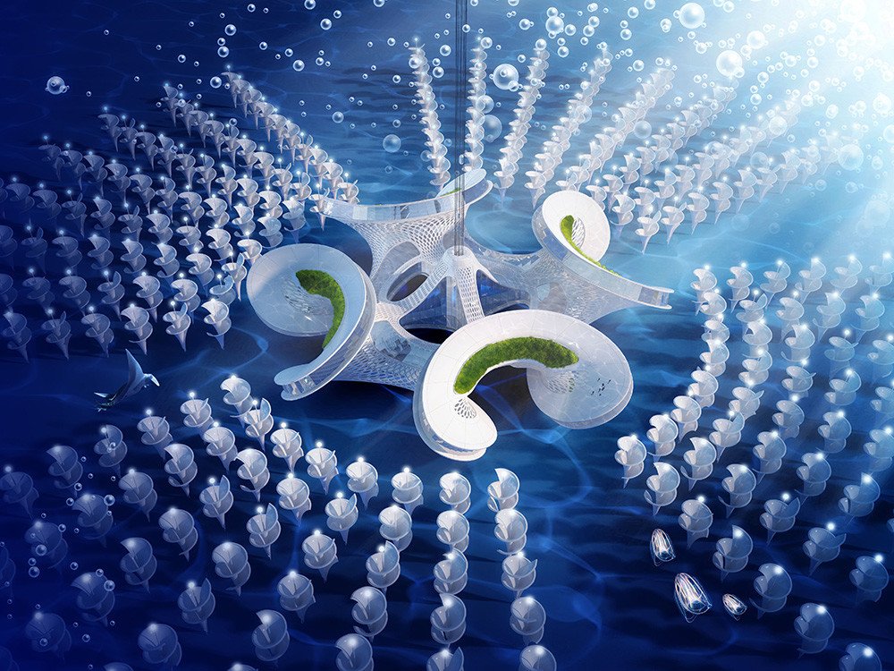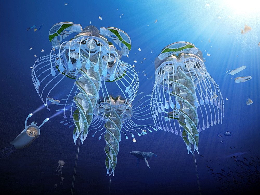 La propuesta, llamada Aequorea, consiste en aldeas desarrolladas con impresoras 3D, que usarán turbinas para crear energía a partir del agua; unos bioreactores reciclarán los residuos orgánicos y la biogasolina neutralizará la acidificación. En otras palabras, se trataría de un espacio totalmente autosuficiente que utilizaría las energías renovables del sol, el viento y el mar.