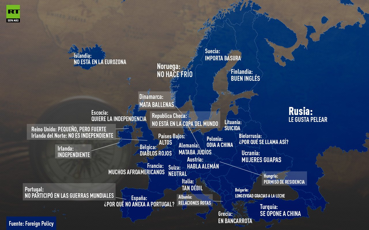 En el mapa se puede apreciar que los usuarios chinos creen que en "Noruega no hace frío", que "Polonia odia a China", que "en los Países Bajos viven personas altas", "en Ucrania viven mujeres guapas" y además se hacen preguntas como: "¿por qué España no se anexiona a Portugal?" y "¿por qué se llama así Bielorrusia?".