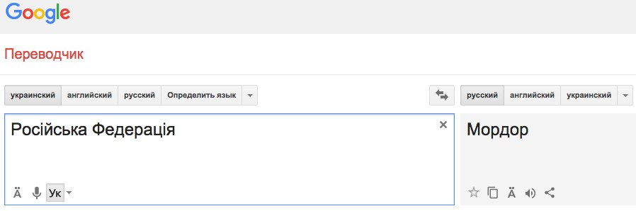 — RFE/RL (@RFERL) January 5, 2016I live in Mordor:) Google Translate. Ukrainian-Russian. pic.twitter.com/0vCpTFcUW2