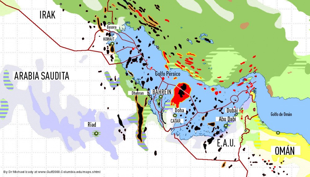 El mapa muestra que casi todos los combustibles fósiles del golfo Pérsico y las áreas de tierra firme colindantes se encuentran en zonas pobladas mayoritariamente por chiitas. "Eso es así incluso en Arabia Saudita, un país sunita donde los principales yacimientos petrolíferos están situados en la provincia del Este, que tiene una población mayoritariamente chiita", sostiene el Schwarz.
