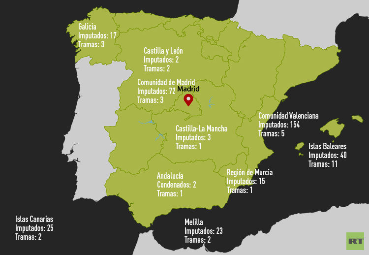 La madrugada de este martes la Guardia Civil española detuvo a 24 personas y realizó registros en un amplio operativo anticorrupción en la Comunidad Valenciana. Entre los detenidos se encuentran Alfonso Rus, expresidente de la Diputación valenciana y del Partido Popular de Valencia; Máximo Caturla, ex vicepresidente de la Diputación; Emilio Llopis, exjefe de gabinete de Rus durante su mandato en la Diputación y María José Alcón, exconcejal del Ayuntamiento de Valencia.