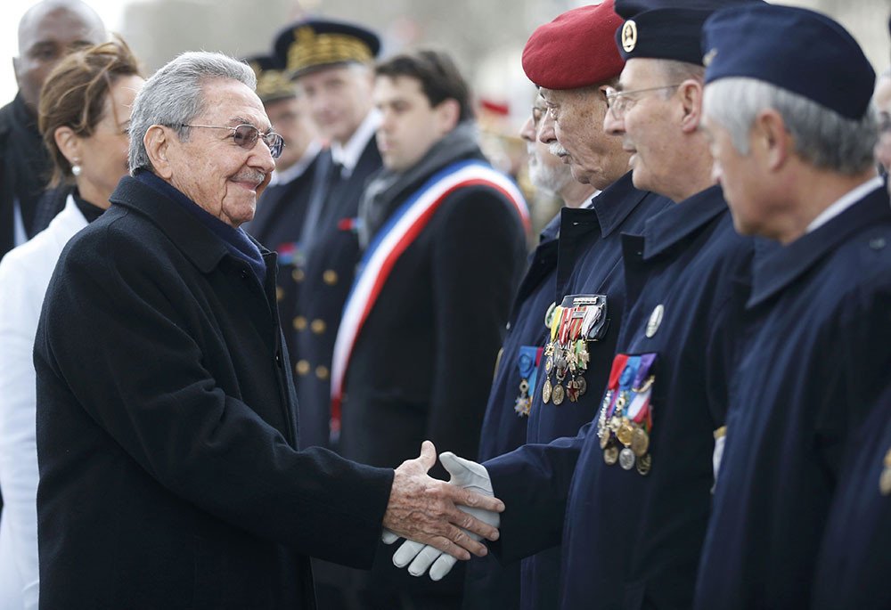 La mañana de este lunes, Castro puso una ofrenda ante la tumba del soldado desconocido en el Arco del Triunfo de París, y en la tarde se reunió con su homólogo francés, Francois Hollande.