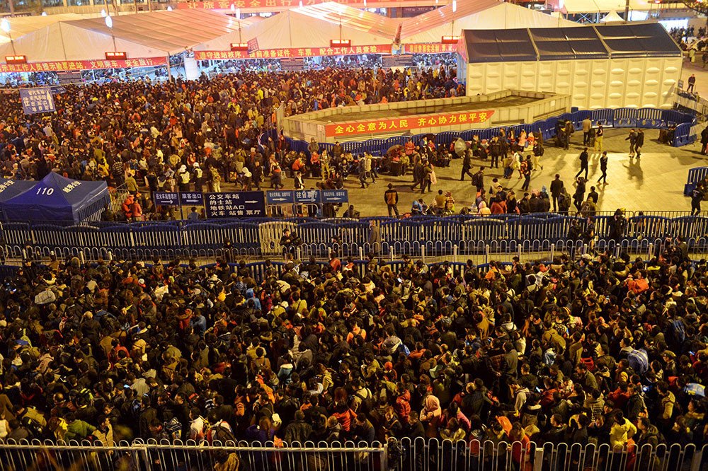 Se estima que más de 175.000 pasajeros tenían previsto salir de la estación este martes, décimo día de la Fiesta de la Primavera, un acontecimiento importante en China que se prolonga durante 40 días (también conocido como el Año Nuevo Lunar). Durante este período millones de chinos suelen viajar en tren, autobús, coche y avión para visitar a sus parientes y amigos.