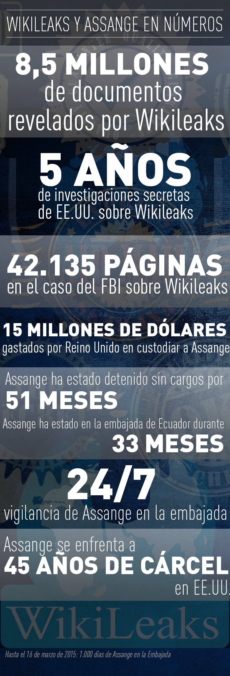 En junio de 2012 Assange solicitó refugio en la Embajada de Ecuador en Londres para evitar su extradición a Suecia. El activista opina que desde Suecia lo extraditarían a EE.UU., donde lo procesarían según la Ley de Espionaje por filtraciones de material secreto antes de enfrentarse a una larga pena de prisión o incluso a la pena de muerte.