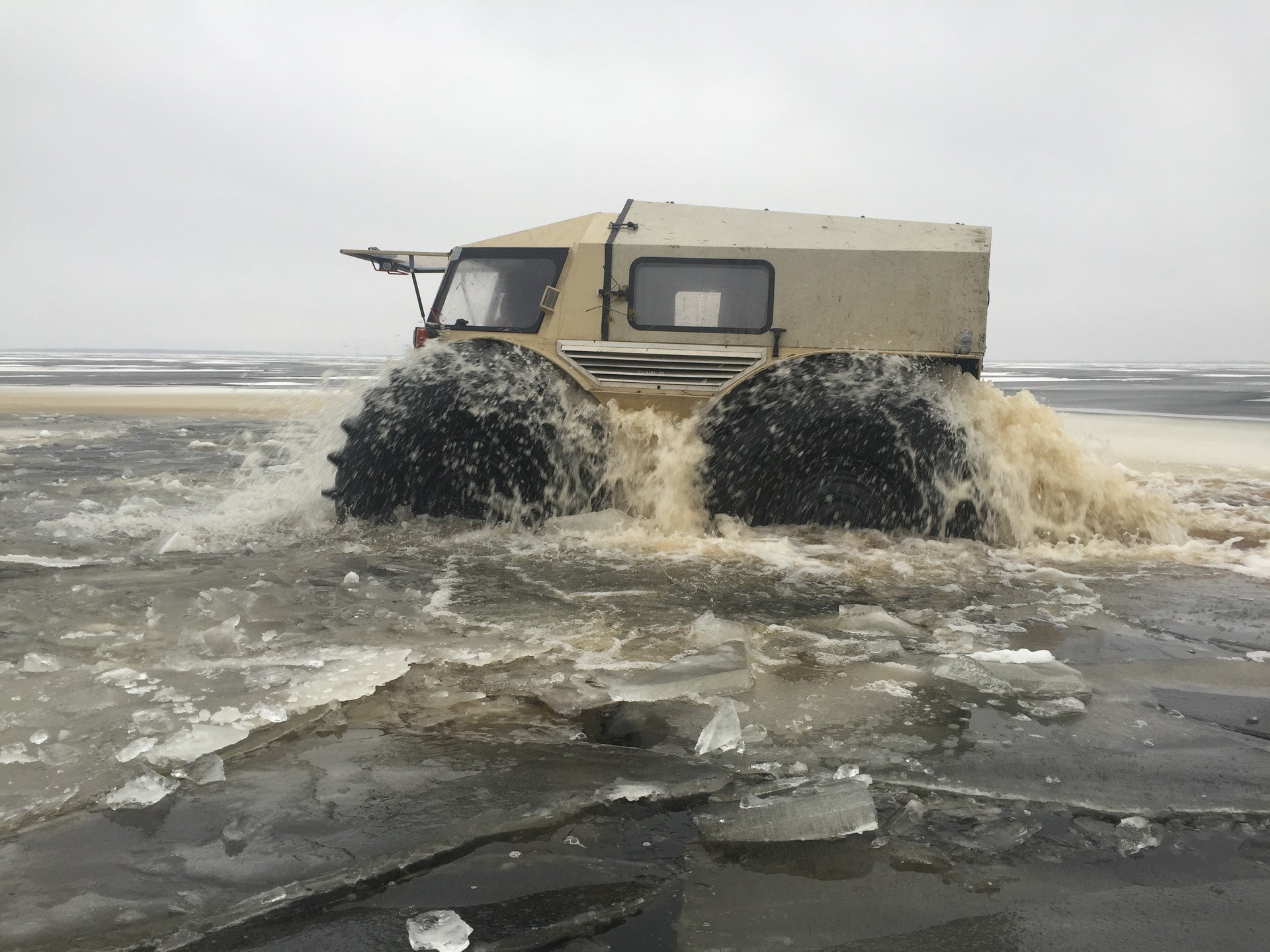 Diseñado por el ingeniero ruso Alexéi Garagashyán, el todoterreno Sherp mide 3,4 metros de largo, 2,5 metros de ancho y pesa 1.300 kilos. Con un motor diésel 1,5 de 44,3 caballos y cuatro cilindros sujeto a un cambio manual de cinco marchas, desarrolla una velocidad de 45 kilómetros por hora. Aunque puede parecer poco, el Sherp es capaz de desplazarse en el agua a una velocidad de solo seis kilómetros por hora y superar desniveles de hasta 70 centímetros en vertical, informa Gizmodo.