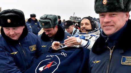 Se ha completado la misión más larga de un astronauta estadounidense —340 días— con el exitoso aterrizaje de la nave espacial Soyuz TMA-18M en Kazajistán. Los cosmonautas Serguéi Vólkov, Mijaíl Korniyénko y el astronauta Scott Kelly formaban parte de la 46ª Expedición de larga duración.