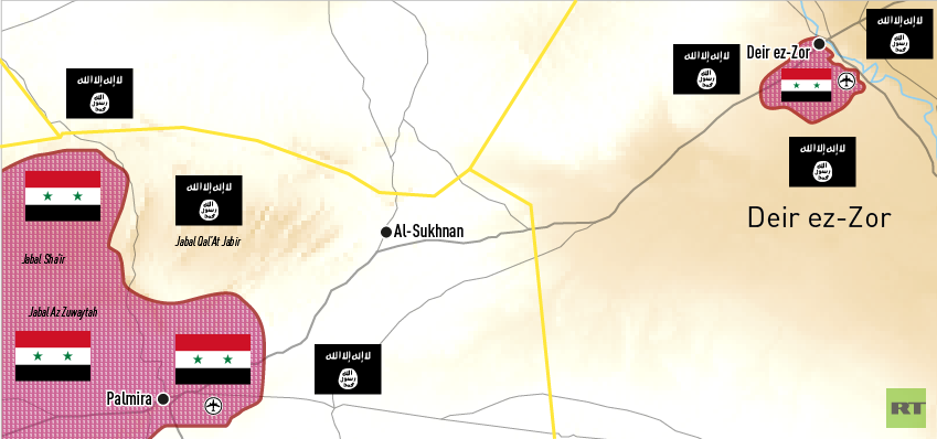 Este lunes, las tropas del Gobierno sirio han avanzado unos cuatro kilómetros por la autopista M7 que conecta Palmira y la capital de la provincia, la ciudad de Deir ez-Zor. No obstante, el avance tardará cierto tiempo, dado que los terroristas del Estado Islámico han minado la carretera.