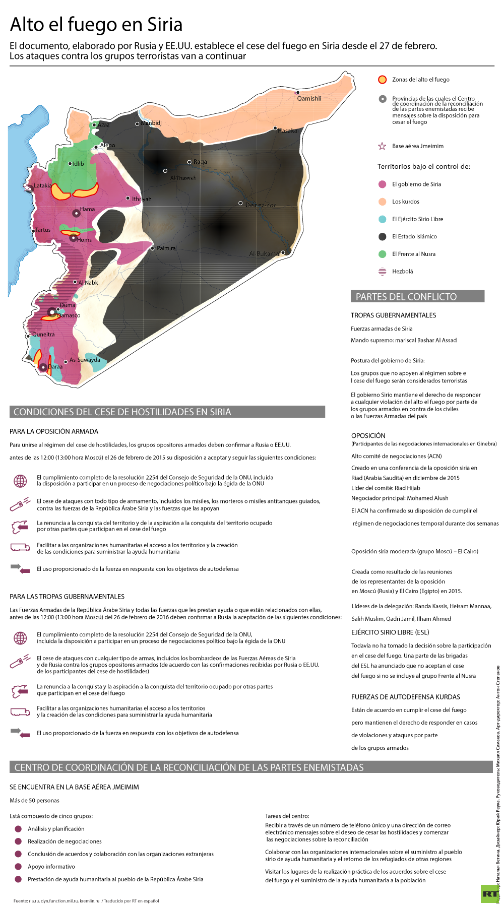 No obstante, el número de grupos armados que se han sumado al alto el fuego, declarado a finales de febrero, ya alcanza los 50. Los militares rusos que monitorean el proceso de la reconciliación cifraron en 61 las poblaciones que proclamaron su apoyo a la tregua. En total, el alto el fuego se respeta en la mayoría de las regiones sirias, siendo los enfrentamientos registrados casos aislados.