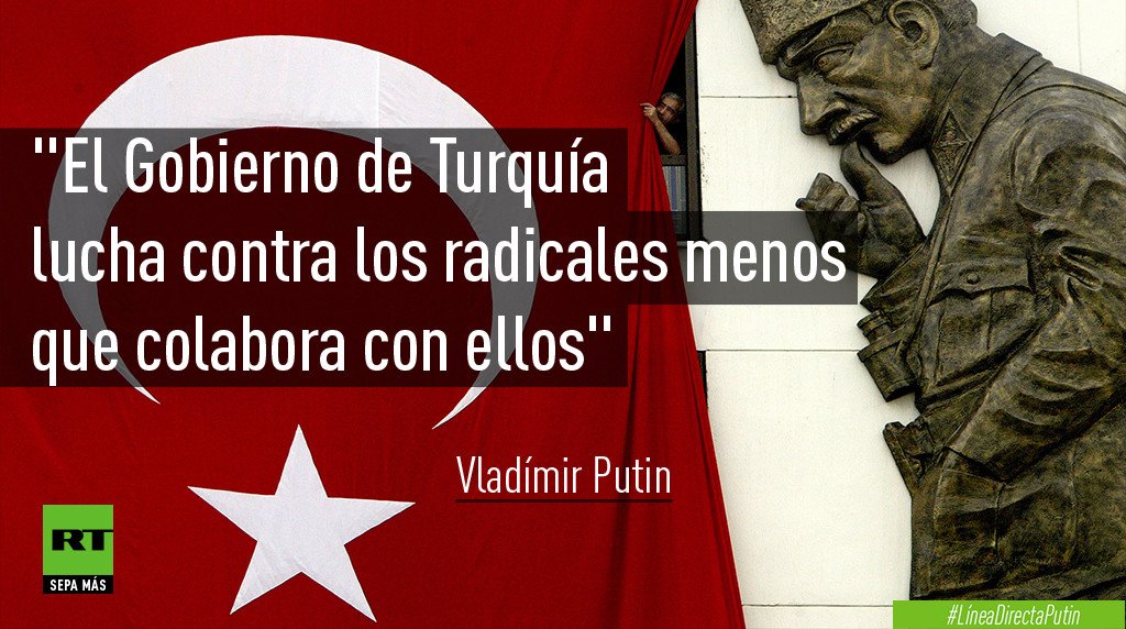 El presidente ruso Vladímir Putin ha criticado a las autoridades turcas actuales por colaborar con los radicales islámicos. "El Gobierno de Turquía no lucha contra radicales: colabora con ellos".