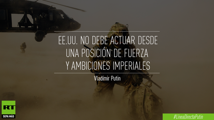 EE.UU. no debe actuar desde una posición de fuerza y ambiciones imperiales, sino respetar a los socios, entre ellos Rusia, ha señalado este jueves el presidente ruso Vladímir Putin.
