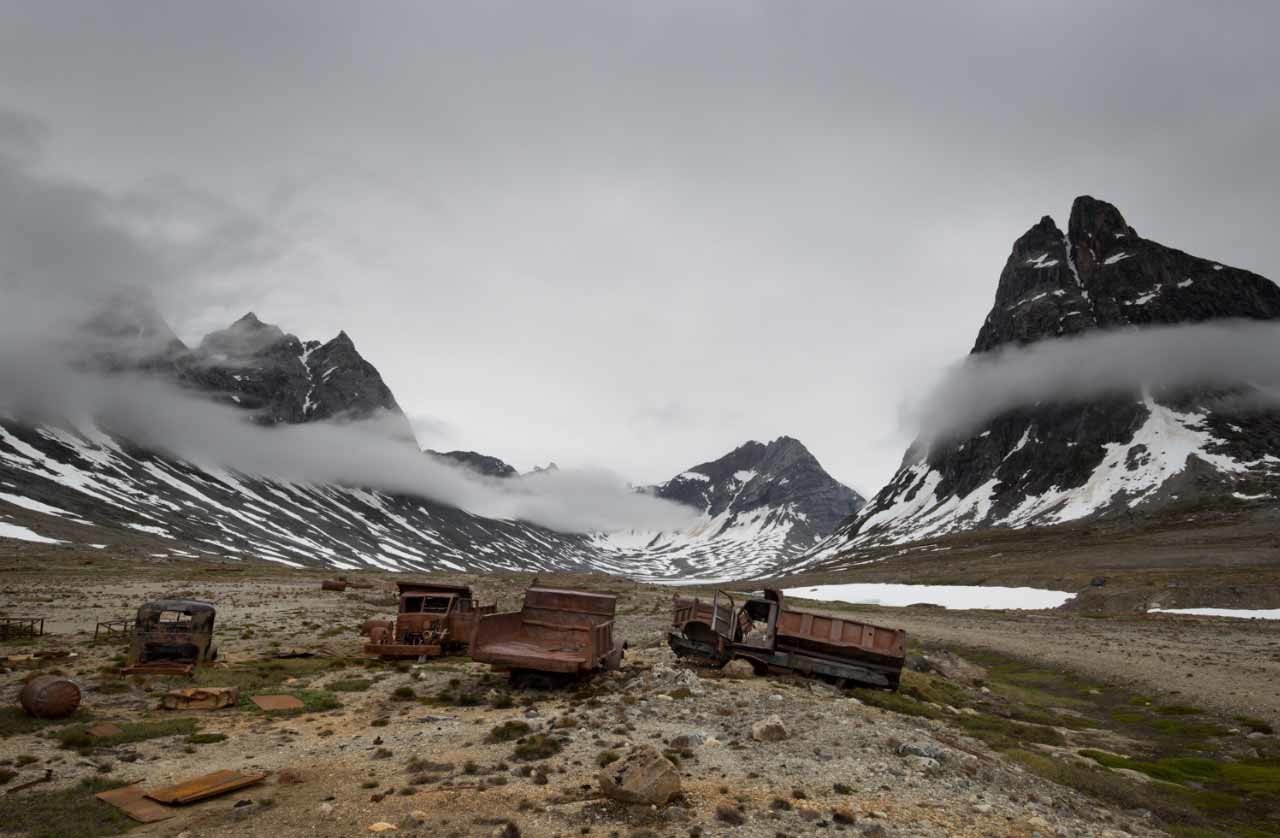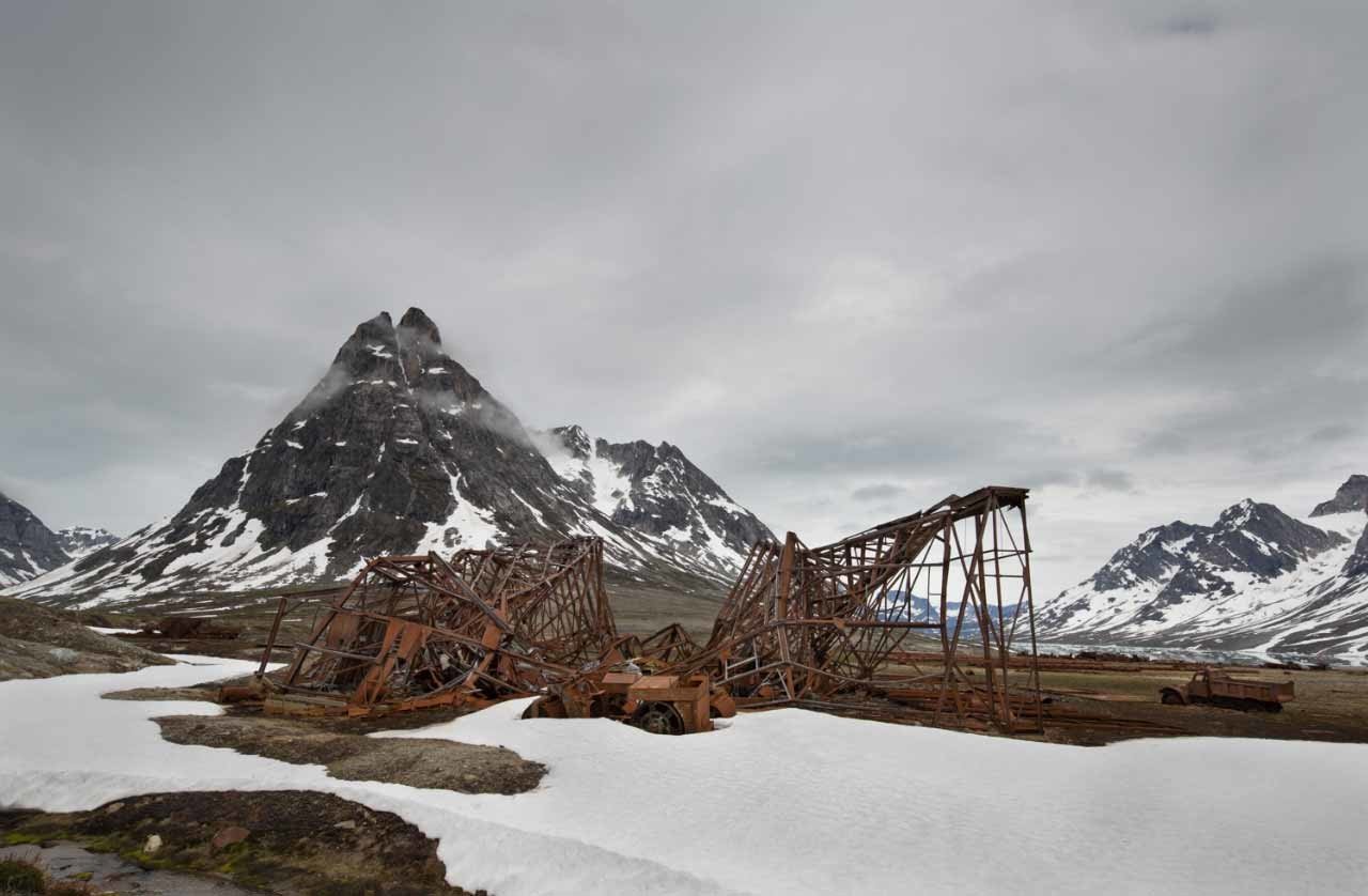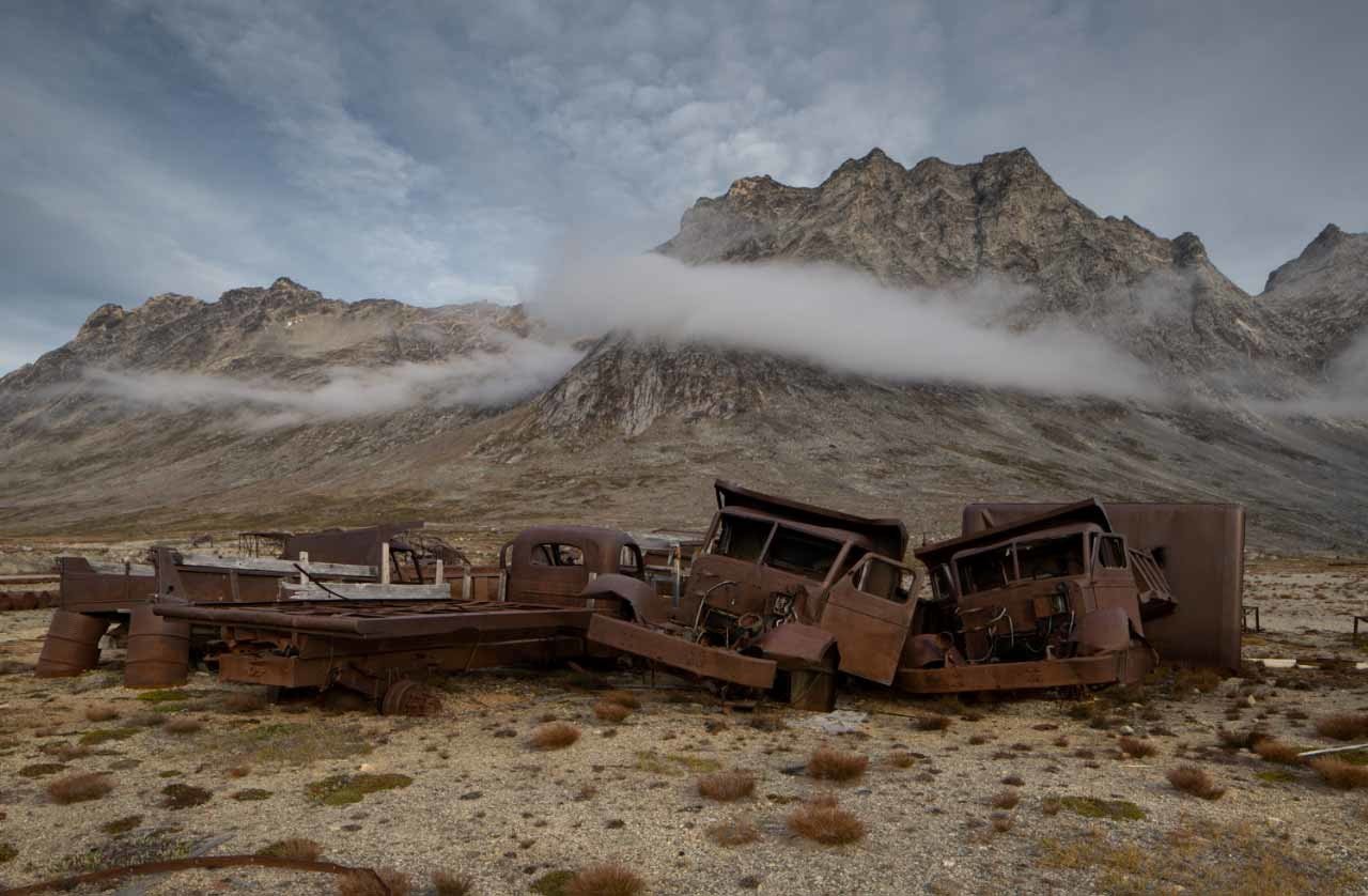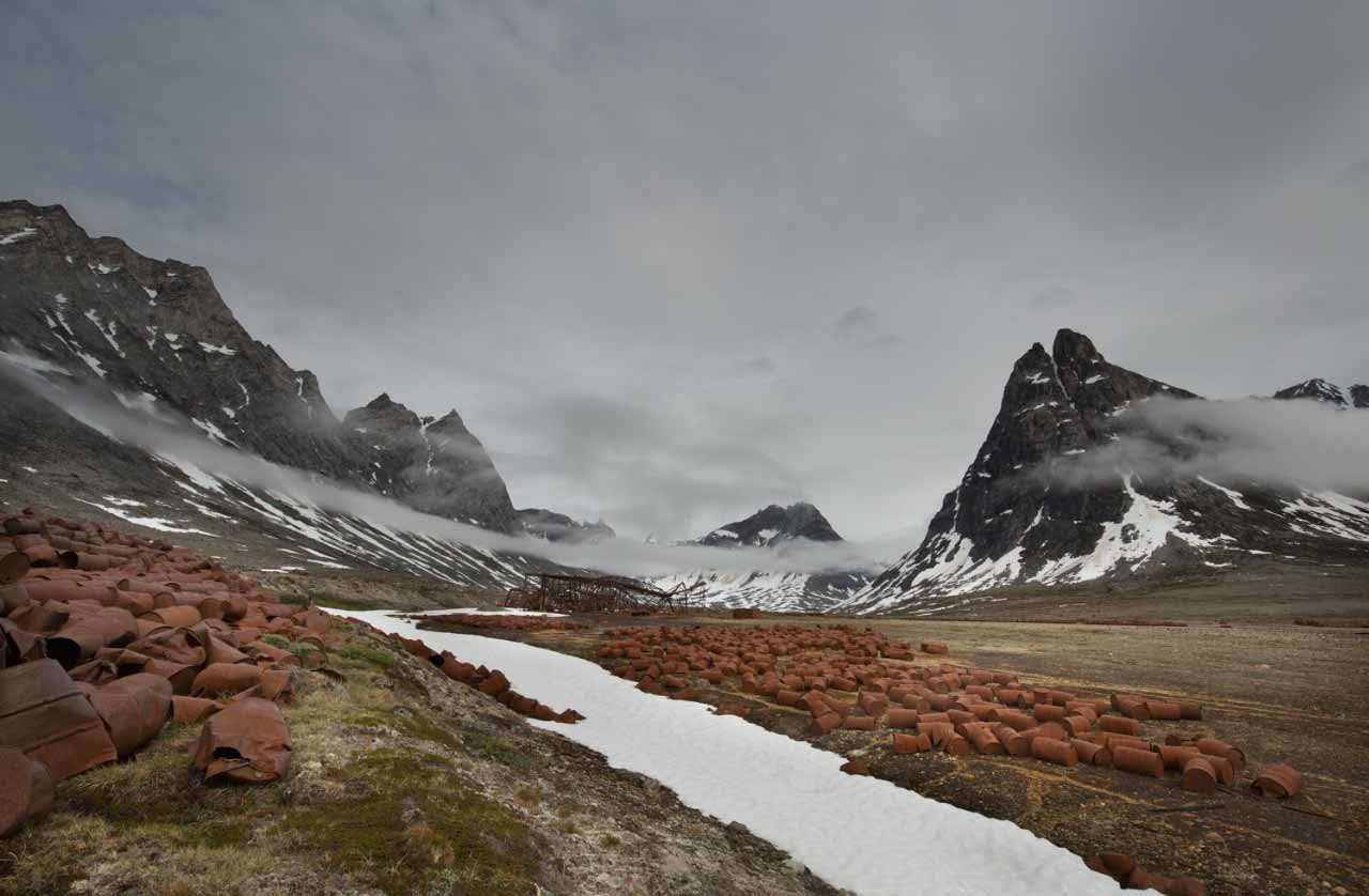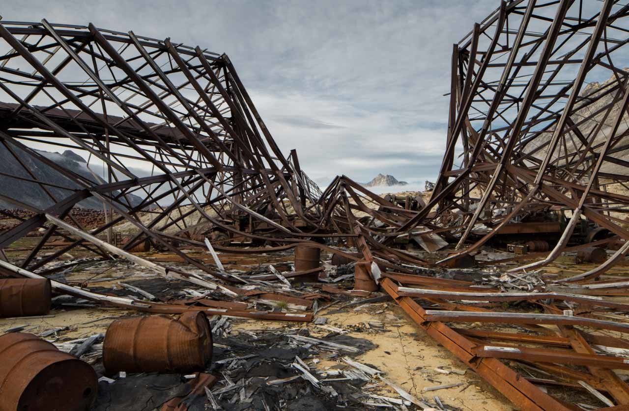 El fotógrafo Ken Bower, de Nueva York, viajó a la isla y tomó impactantes instantáneas de los restos de la base con los pintorescos paisajes de Groenlandia de fondo.