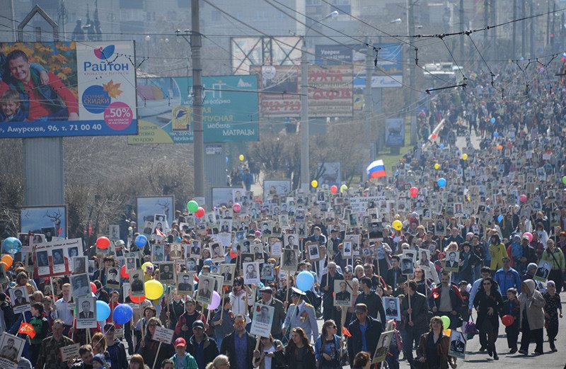 El Regimiento Inmortal es una iniciativa rusa que se ha extendido por todo el mundo después de celebrarse por primera vez en 2007. Este año, miles de personas en 42 países participan en marchas para honrar la memoria de sus familiares que participaron en la Segunda Guerra Mundial.