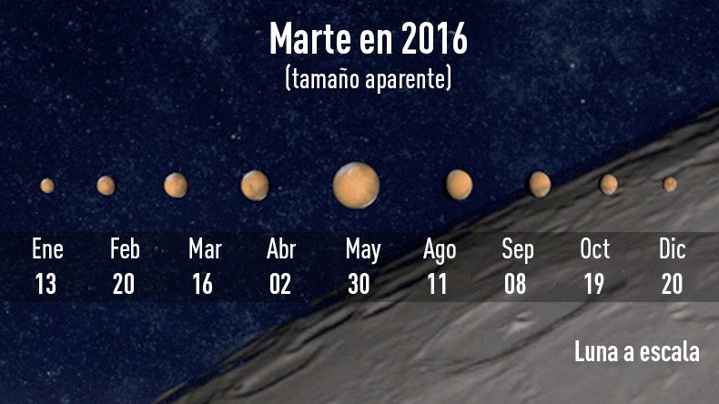 Esta oposición se realiza cada 26 meses, pero la distancia real entre Marte y la Tierra varía debido a la compleja interacción de los cuerpos celestes.