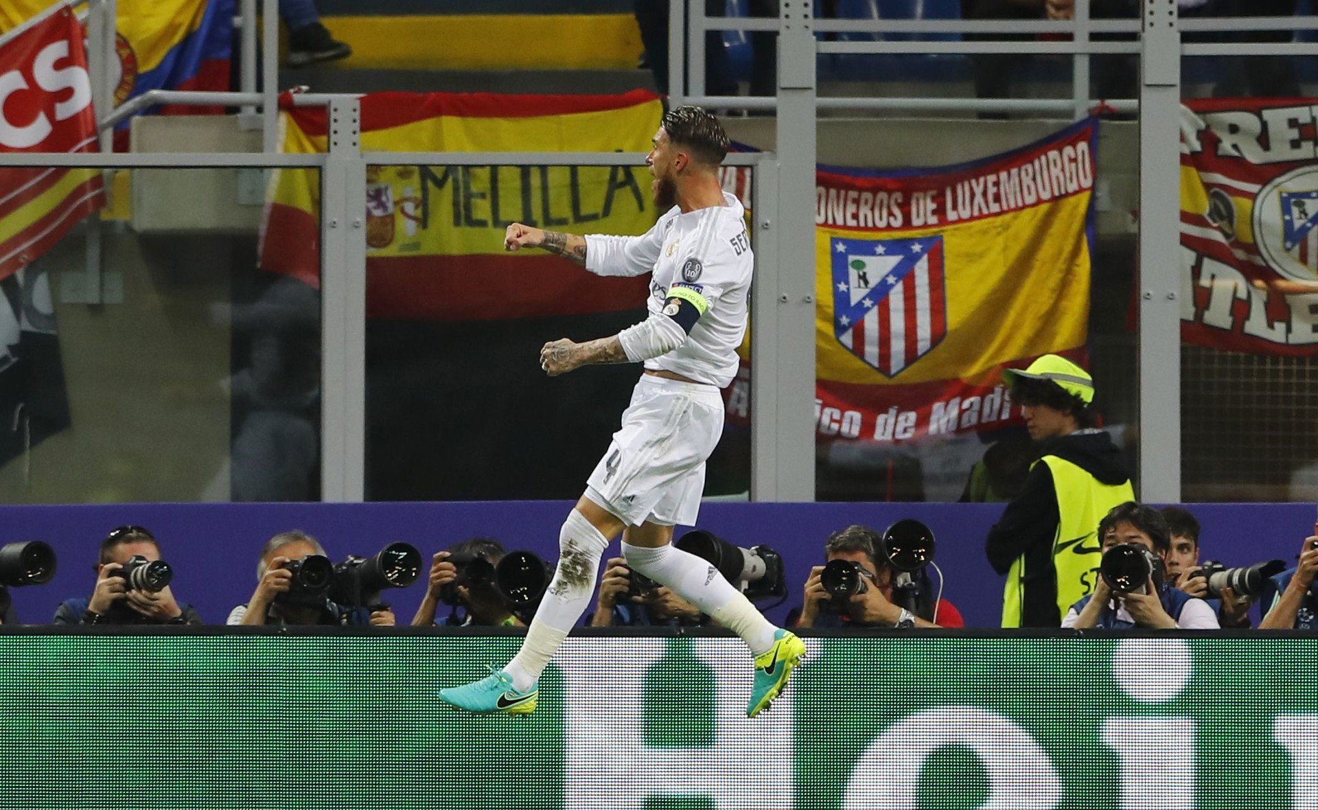 15' | ¡Gol del Real Madrid! Sergio Ramos aprovecha un desajuste de la defensa del Atletico y la manda adentro luego de un tiro libre desde el costado
