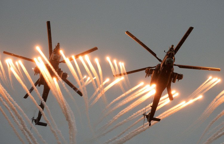 Fotos, video: Así atacan a un 'enemigo' helicópteros de combate y cazas rusos