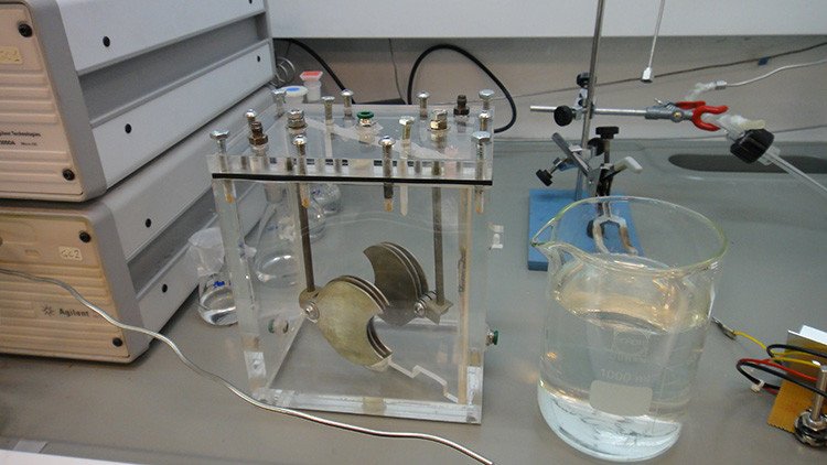 Se trata de un tanque de material acrílico con electrodos metálicos de 20 centímetros cuadrados. Con corriente eléctrica se realiza el proceso de electrólisis que separa el oxígeno y el hidrógeno que hay en la orina. Este último se usa como biocombustible. Luna-Sandoval afirmó que se trata de una "gran innovación" que tiene "alta viabilidad".
