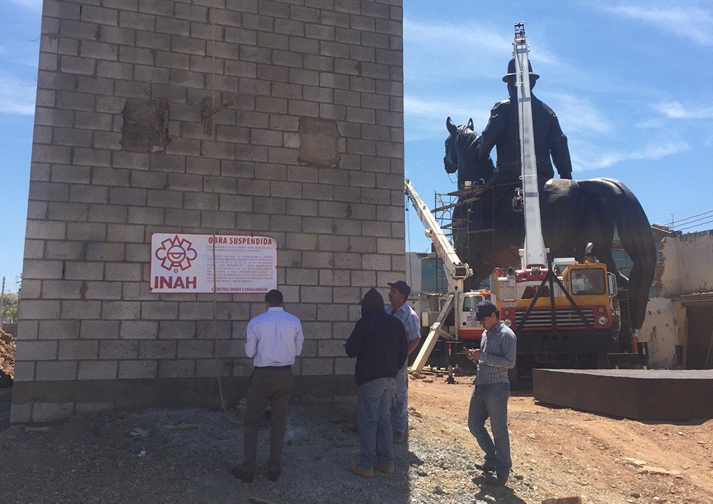 Y es que el Instituto Nacional de Antropología e Historia (INAH) de México suspendió de manera precautoria la erección del monumento debido a que, para levantar la estatua, el Ayuntamiento de Parral había demolido el pasado 30 de abril una antigua casona catalogada como monumento histórico ubicada en la esquina de Purísima.