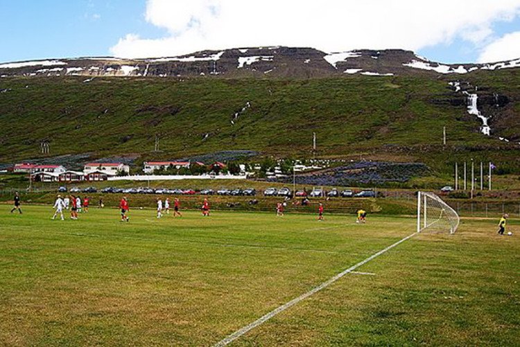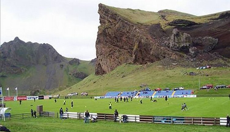 Los campos de fútbol en Islandia también merecen atención. Son canchas muy modestas, con tribunas muy pequeñas y muchas veces rodeadas por las montañas y azotadas por los vientos (en Islandia hay solo ocho estadios cubiertos).