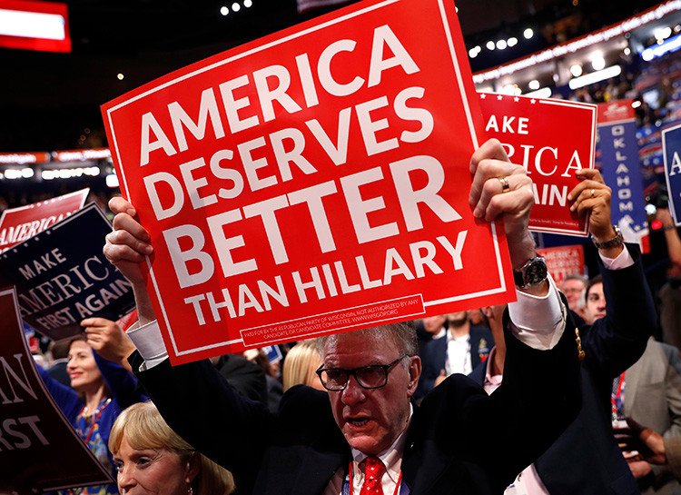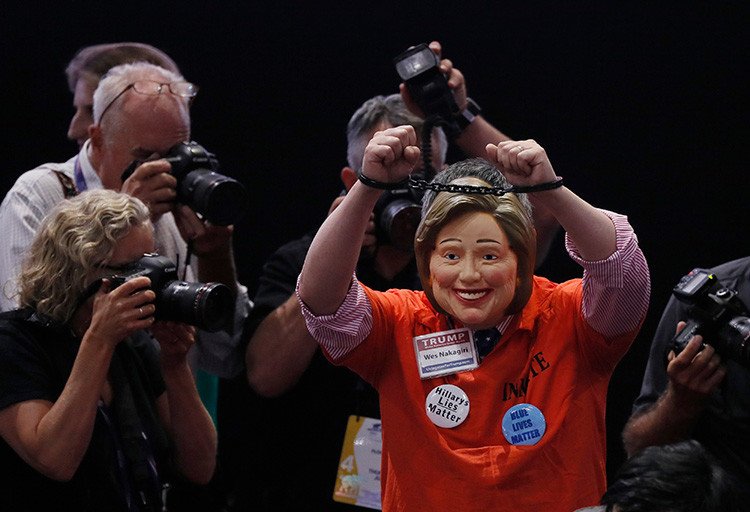 Las dos declaraciones se enmarcan en el ambiente de hostilidad hacia Clinton que reina en la campaña de Trump y que se deja sentir en las calles, donde los productos en venta más populares de la campaña republicana llevan lemas contra la aspirante demócrata.