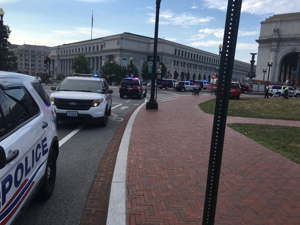 Scene outside Union station. A few cop cars making their way up; you keep hearing more sirens. pic.twitter.com/f6S9wIrFEr