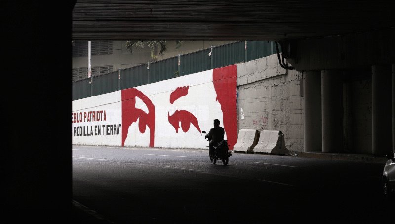 Pero de eso han pasado 17 años y esto es Caracas. Bueno, una parte de ella: el centro. Un señor, con una gorra de Venezuela, ondea una bandera tricolor con ocho estrellas, en una esquina contigua al edificio de la Asamblea Nacional (AN). "¡Qué viva Chávez!", grita al lado de una corneta que asorda. Es Jhon López, un señor de 45 años, nacido en Portuguesa -en el occidente de Venezuela-, que viaja todas las semanas a la capital. Los jueves, casi religiosamente, cumple su labor como agitador en un toldo rojo bautizado como "la esquina caliente", un bastión del chavismo donde jamás se toman vacaciones porque funciona todos los días del año, donde se lee, se discute, se canta, se está.