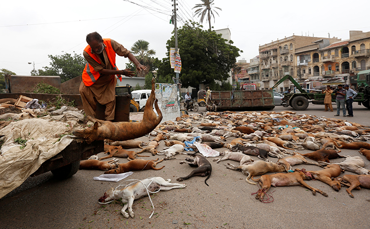 Las autoridades de la ciudad pakistaní de Karachi han llevado a cabo una campaña de envenenamiento masivo de perros vagabundos para solucionar los problemas que provocan los animales, ha comunicado este jueves Reuters. Durante dos días al menos 700 perros fueron exterminados y sus cadáveres permanecieron en las calles de la ciudad mientras los operarios los recogían para deshacerse de ellos.