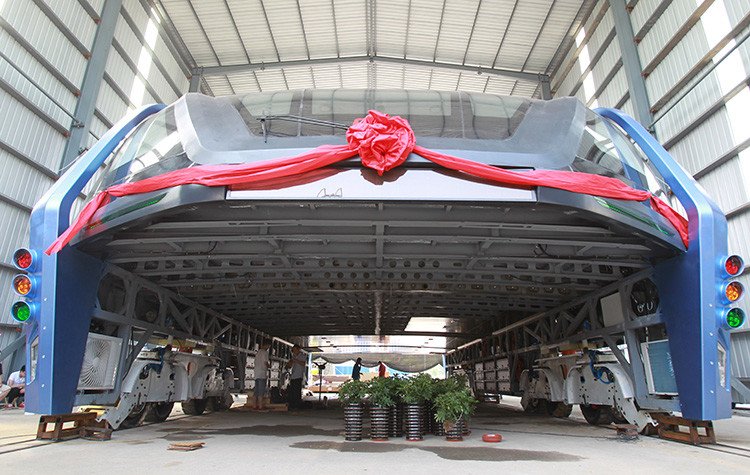La semana pasada la agencia Xinhua informó que el futurista autobús, también conocido como 'Batie', cuyo diseño le permite pasar por encima de otros vehículos y así reducir los atascos, fue probado en la ciudad de Qinhuangdao (provincia china de Hebei). El vehículo, con capacidad para transportar a 300 personas, mide 22 metros de largo, 7,8 metros de ancho y 4,8 metros de alto. El ancho del bus permite que por debajo de él pasen dos hileras de vehículos tipo turismo.