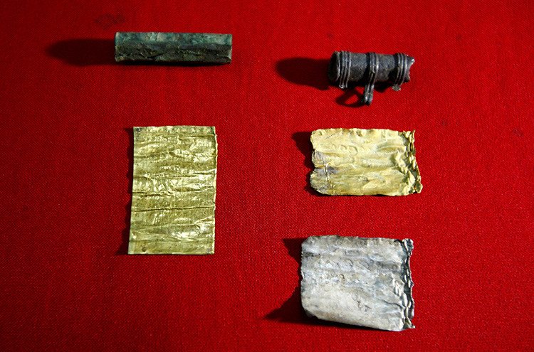 Estos rollos se encontraban dentro de unos amuletos de plomo que estaban al lado de los restos óseos.