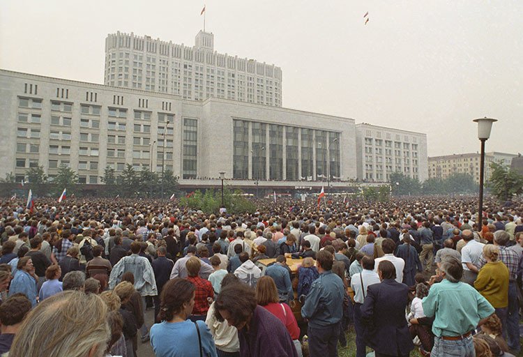 13. Borís Yeltsin exige a sus seguidores "oponer resistencia a los golpistas" y apoyar la democracia. Según distintos cálculos, entre 50.000 y 200.000 personas (mayoritariamente moscovitas) respondieron a su llamamiento y salieron a la calle en la tarde del 19 de agosto. Algunos de ellos salieron armados.