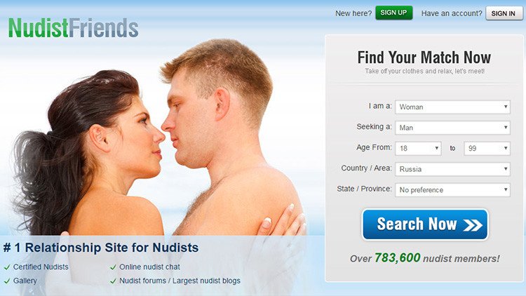 Anunciado como "el primer" y "más efectivo" sitio de relaciones para los naturistas, NudistFriends ofrece "un ambiente amistoso y confidencial para que nudistas y naturistas busquen amistades, relaciones y recursos relacionados con el estilo de vida nudista", reza el mensaje de la página principal del sitio de citas.