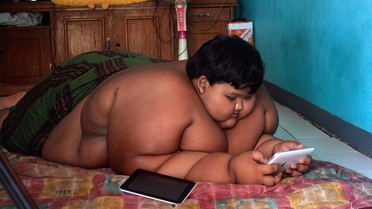 Arya Permana, un niño de 10 años que pesa alrededor de 192 kilos, ha podido volver a la escuela en el oeste de Java, Indonesia, después de someterse durante dos meses a un plan alimenticio para disminuir de peso, mejorar su salud y volver a caminar.