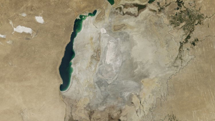 El Observatorio de la Tierra de la NASA ha publicado en su página web algunas fotos asombrosas de la desaparición del mar de Aral. El lago, escondido entre Kazajstán y Uzbekistán, que una vez fue el cuarto más grande en el mundo, hoy en día, después de décadas de ser drenado para el riego, casi ha desaparecido.
