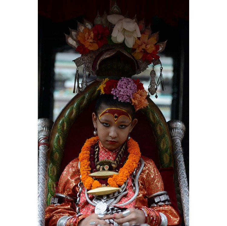 La nueva Kumari vive con su madre y su padre, que han dejado sus trabajos para convertirse en sus cuidadores. A la diosa Kumari no se le permite salir de su residencia, excepto para asistir a festivales sagrados, no pudiendo tocar nunca el suelo con sus pies, incluso dentro de su casa, siendo portada a todas partes. Para que pueda lucir su meticuloso maquillaje, su madre tuvo que aprender a hacerlo.