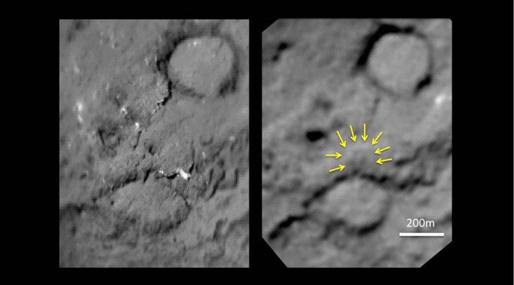 En las imágenes se observa cómo la superficie del cometa recupera su forma original solo unos pocos días después de la colisión.