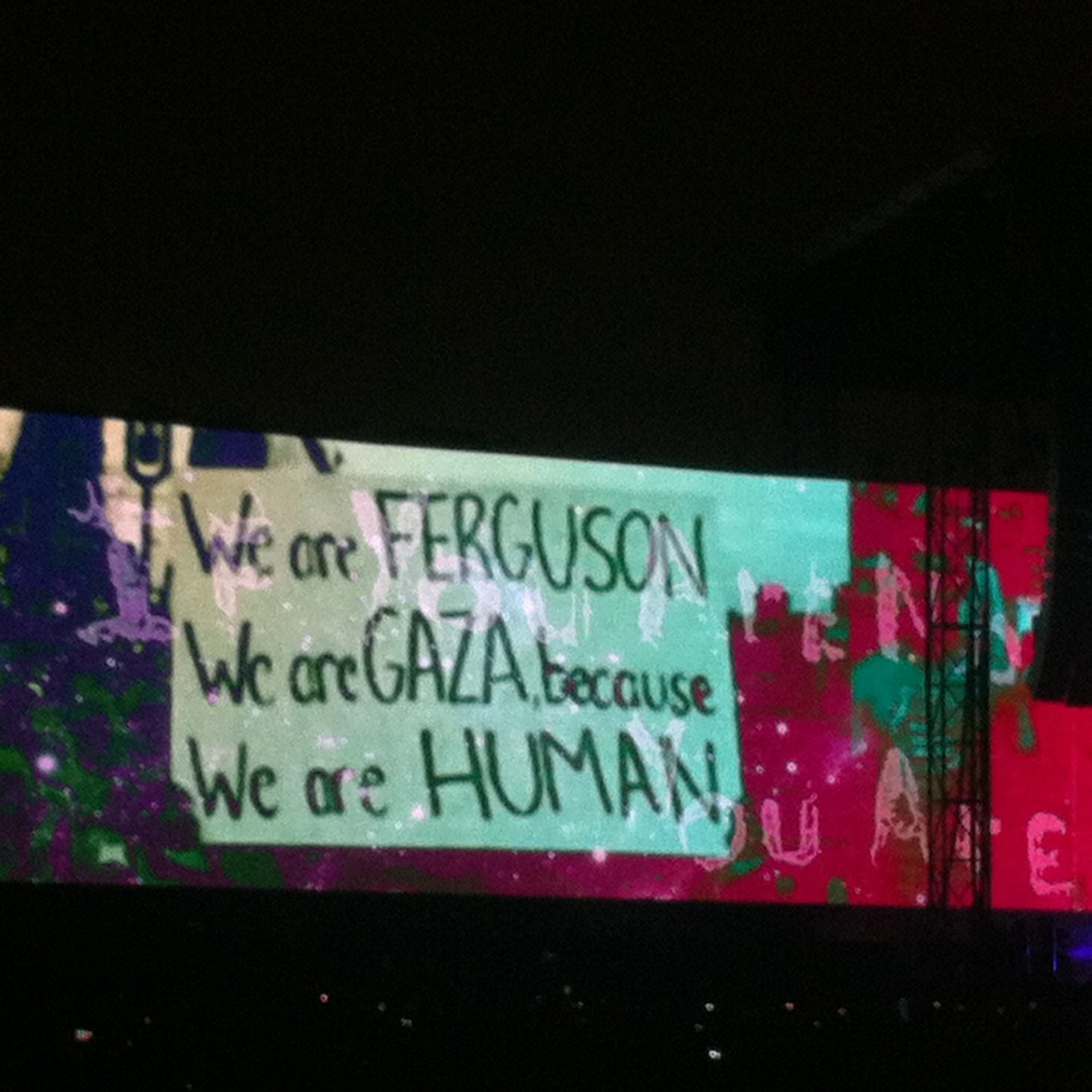 "La última vez que toqué aquí en el Foro Sol, conocí a unas familias de los jóvenes desaparecidos de México. Sus lágrimas se hicieron mías, pero las lágrimas no traerán de vuelta a sus hijos".