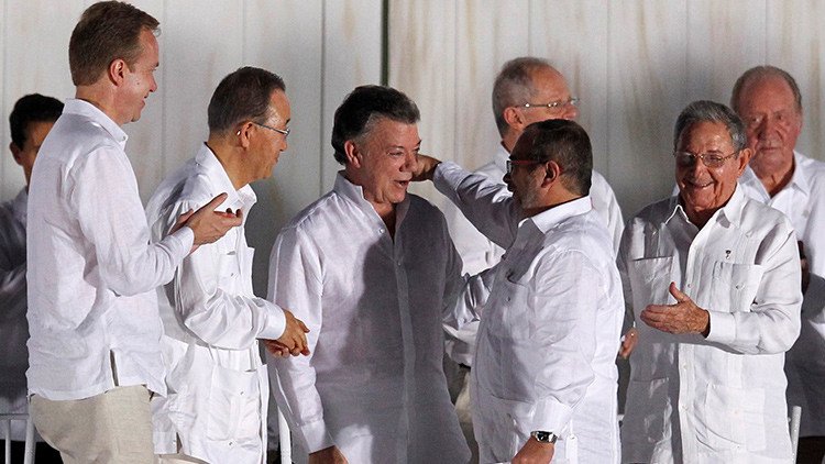 El 26 de septiembre de 2016 pasó a la historia de Colombia por ser la fecha en que, oficialmente, se puso fin a una guerra interna de 52 años. El Gobierno del presidente Juan Manuel Santos y las Fuerzas Armadas Revolucionarias de Colombia (FARC) firmaron este lunes el acuerdo final de paz. El líder de las FARC también anunció el fin de la guerra y ha hecho un gesto histórico tras pedir perdón a todas las víctimas. Anunciado el pasado 24 de agosto, el proceso culminará este domingo con un plebiscito.