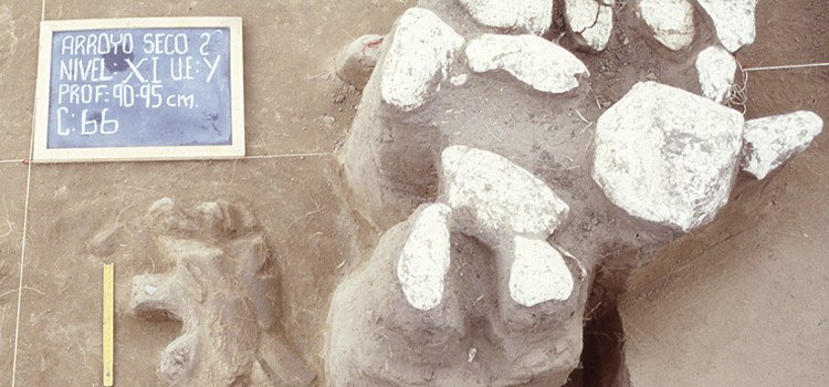 Al menos, a esa época corresponden las primeras evidencias de la presencia humana en Arroyo Seco, según la datación de los huesos de animales rotos por los cazadores que se han encontrado en el lugar y "es de las más precisas que se pueden lograr hoy en el mundo", debido a que los restos humanos raras veces se conservan durante tanto tiempo, destaca Politis.