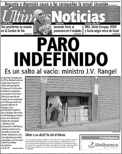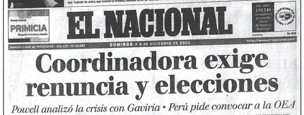 La mañana del 11 de abril de 2002, el diario El Nacional sacó una edición extra que abrió con el titular "La batalla final será en Miaflores". Lo curioso es que esa tirada se imprimió antes de que la derecha anunciara que iba a desviar su marcha desde el este de la ciudad hasta el centro de Caracas, donde está ubicada la sede de gobierno. Era parte de un plan que se revelaría horas más tarde.