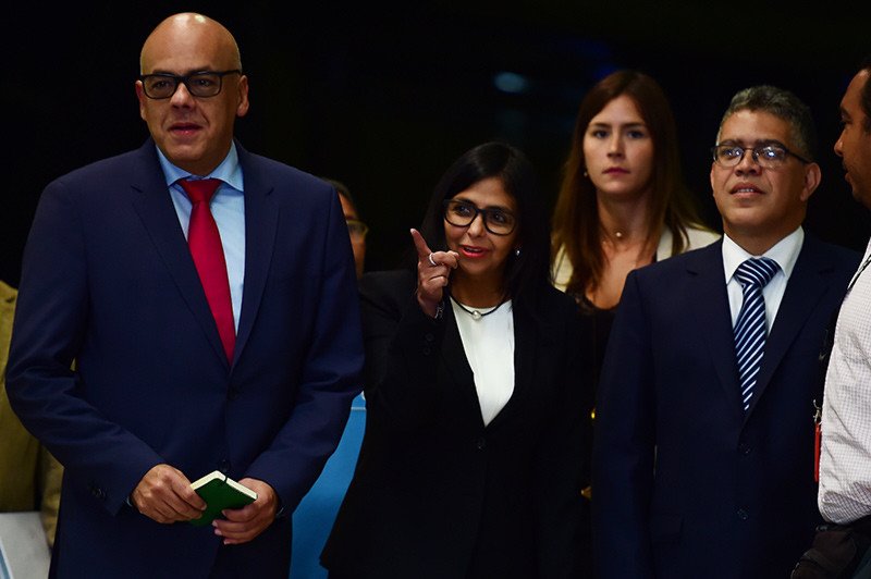 Por el gobierno, la delegación está integrada por el alcalde de Caracas, Jorge Rodríguez; la canciller venezolana, Delcy Rodríguez; el ex-embajador ante la Organización de Estados Americanos (OEA), Roy Chaderton; y el diputado chavista Elías Jaua.