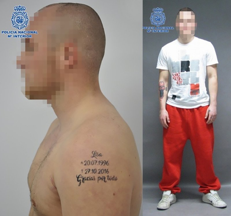El alemán fue acusado además de huir con su bebé de 18 meses desde Alemania al sur, supuestamente rumbo a un país norteafricano. La Policía considera que las fechas tatuadas en el hombro izquierdo del sospechoso pueden ser una de las pruebas de su participación en el asesinato: el tatuaje en el cuerpo del hombre reza: 'Lisa *20.07.1996 ✝27.10.2016. Gracias por todo'.