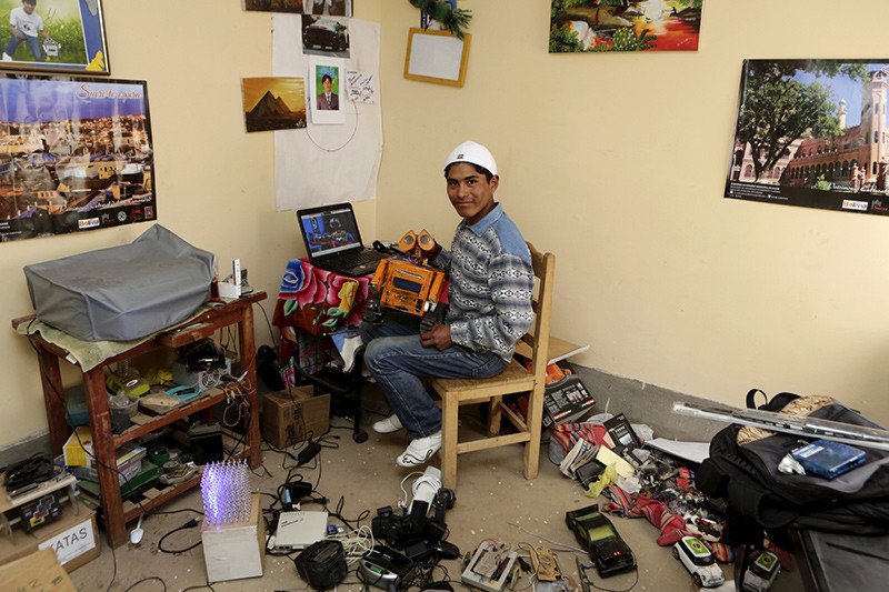Con solo ocho años, Esteban Quispe sorprendió a todos con la fabricación de su primer robot. Curioso, aplicado, creativo y con un gran ingenio, el joven boliviano continuó con sus desarrollos y ahora, una década después, sorprendió con un diseño elaborado a partir de desechos.