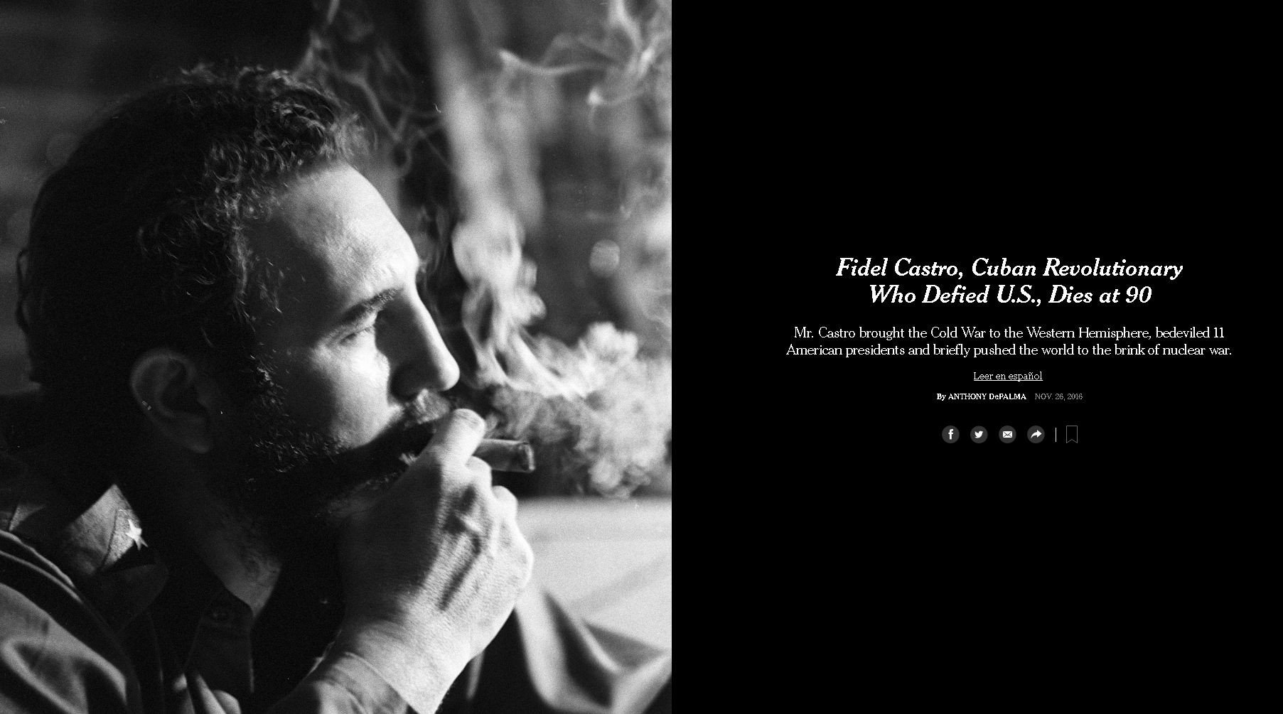 Sin embargo, algunos periódicos presentan una imagen negativa del fallecido exdirigente cubano. Uno de ellos es 'The New York Times', que publica un artículo titulado 'Fidel Castro, el revolucionario cubano que desafió a EE.UU., muere a los 90', y que empieza con las siguientes palabras: "El señor Castro llevó la Guerra Fría al hemisferio occidental, atormentó a 11 presidentes estadounidenses y brevemente empujó al mundo al umbral de una guerra nuclear".