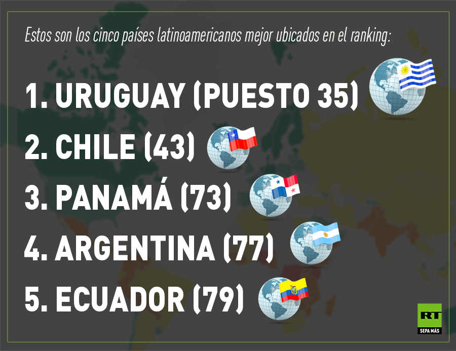 Por el contrario, Venezuela es el país latinoamericano peor posicionado de la lista (en el lugar 119), precedido por México, que se encuentra en el puesto 118.