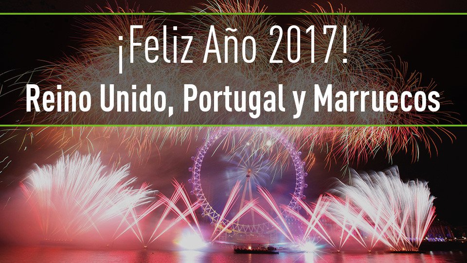 00.00 GMT. ¡Deseamos un feliz 2017 a Reino Unido, Portugal y Marruecos!