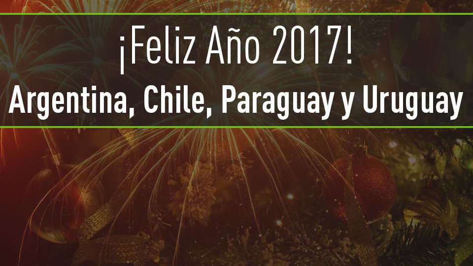 03.00 GMT. ¡Felicitamos el Año Nuevo a Uruguay, Paraguay, Argentina y Chile, los primeros países hispanohablantes de América Latina que estrenan el 2017!