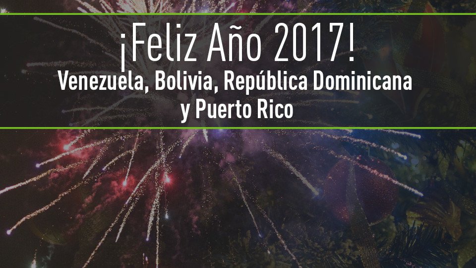04.00 GMT. ¡Feliz Año 2017! ¡Nuestros mejores deseos para Venezuela, Bolivia, República Dominicana y Puerto Rico!