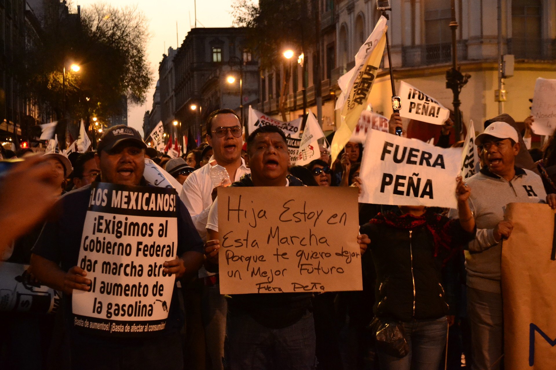 El propio 'gasolinazo' pasó a segundo término cuando los manifestantes exigían la renuncia del presidente: "¡Peña entiende, el pueblo no te quiere!"